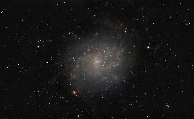 | M33 Triangulum Galaxy processed with 95 x 180s lights, 25 x 180s darks, 25 x 1/400 dark flats, 25 x 1/4000 bias frames (17100s total integration). |